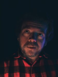 Sharp contrasts, dramatic lighting — a mood that leans toward the eerie, somewhere between tension and silence.