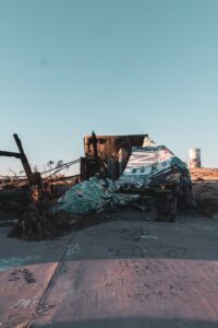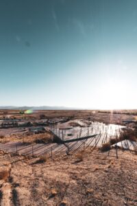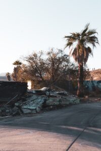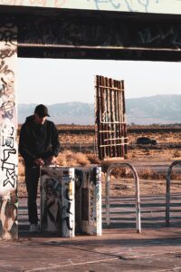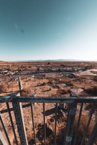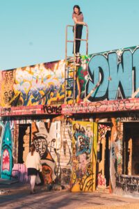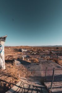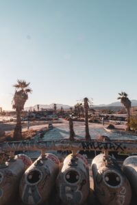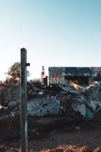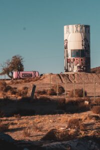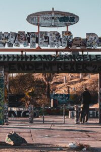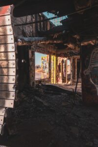 Graffiti, decay, and traces of a loud past now left to the sun and dust.