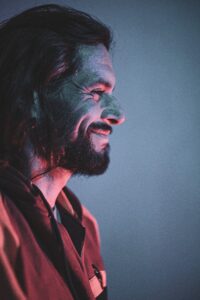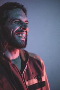 In front of the lens, calm and grounded, but you can still feel the energy just under the surface.